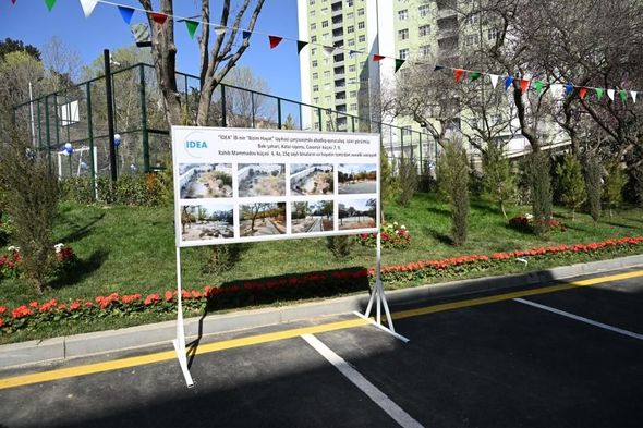 “Yaşıl dünya naminə həmrəylik ili” çərçivəsində Heydər Əliyev Fondunun vitse-prezidenti, “IDEA” İctimai Birliyinin təsisçisi və rəhbəri Leyla Əliyevanın təşəbbüsü ilə Bakı şəhəri Xətai rayon Rahib Məmmədov küçəsi 4. 4a. 15q. və Cavanşir küçəsi 7 və 9 saylı ünvanlarında 2200-dən çox sakinin yaşadığı çoxmərtəbəli binaları əhatə edən həyətlər abadlaşdırılaraq sakinlərin istifadəsinə verilib.