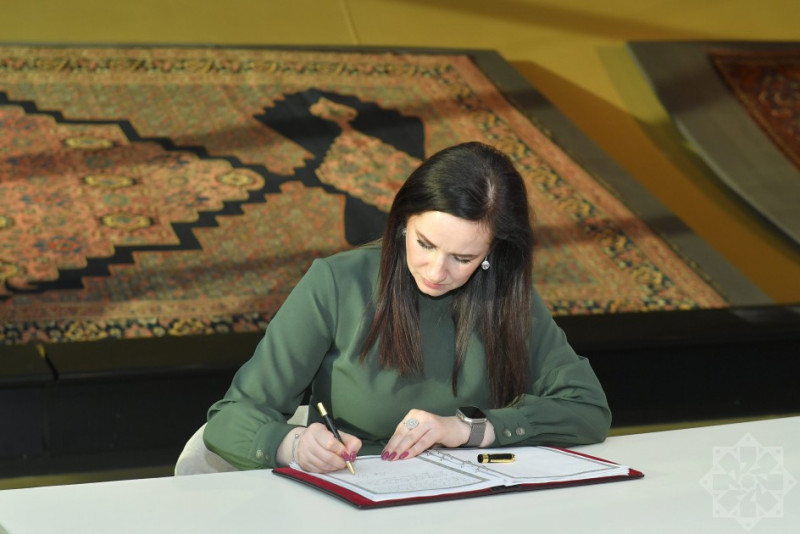 Qeyd olunub ki, Heydər Əliyev Fondunun prezidenti Mehriban Əliyevanın böyük zəhməti sayəsində milli xalçaçılıq sənəti 2010-cu il noyabrın 16-da UNESCO-nun Qeyri-Maddi Mədəni İrs Siyahısına daxil edilib.