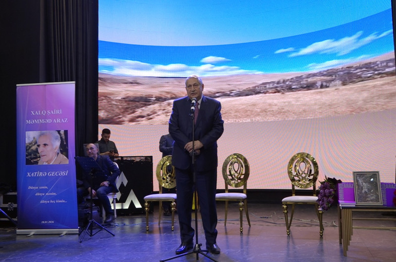 Bakıda Xalq Şairi Məmməd Arazın xatirəsinə həsr olunmuş ədəbi-bədii gecə keçirilib. Tədbir şəhidlərin yad edilməsi və Azərbaycan Respublikasının Dövlət Himninin səsləndirilməsi ilə başlayıb.