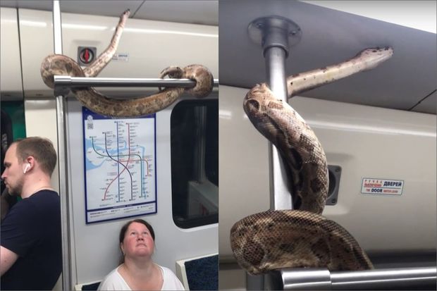 Rusiyanın Sankt-Peterburq şəhərində metronun sərnişinləri qeyri-adi qonaqla - nəhəng pitonla səyahət etmək şansı əldə ediblər. Görüntüləri şahidlərdən biri çəkib.