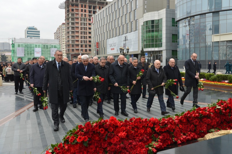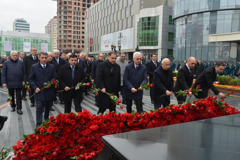 Milli Məclisin kollektivi Xocalı soyqırımı abidəsini ziyarət edib - FOTOLAR