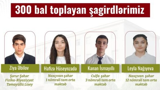 Naxçıvanda 4 şagird 300 bal topladı