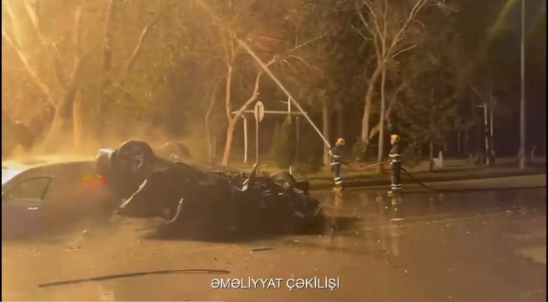 Bakıda qəza güclü yanğına səbəb oldu - VİDEO - YENİLƏNİB