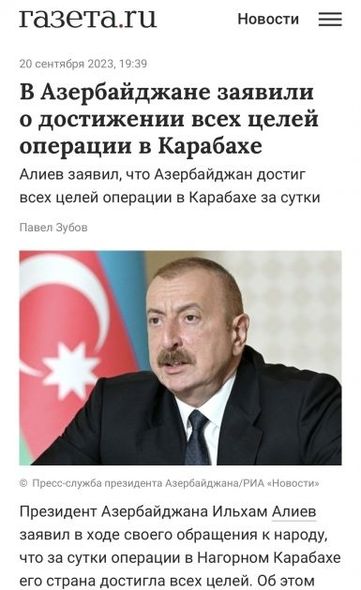 “Qazeta.ru” nəşri Azərbaycanın antiterror tədbirləri zamanı qarşıya qoyulan məqsədlərə nail olduğunu yazıb. Nəşr xatırladıb ki, Azərbaycan antiterror tədbirlərinə genişmiqyaslı təxribatlardan sonra başlayıb və erməni qoşunlarını öz ərazisindən çıxarıb.