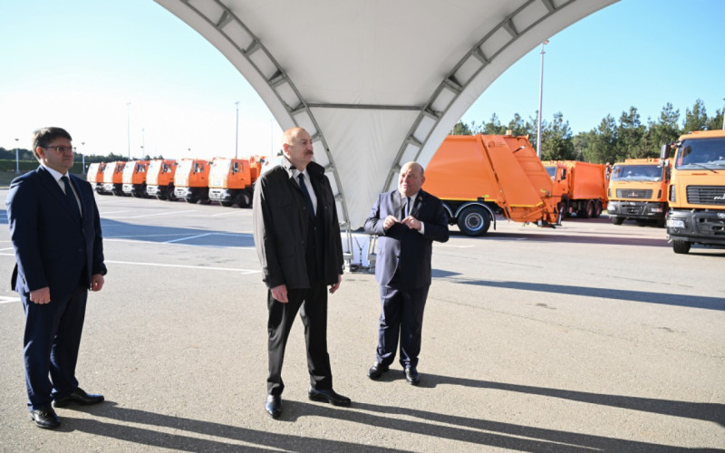 Martın 2-də Azərbaycan Respublikasının Prezidenti İlham Əliyev Bakı Ekspo Mərkəzinin həyətində məişət tullantıları daşıyan texnikalarla tanış olub.
