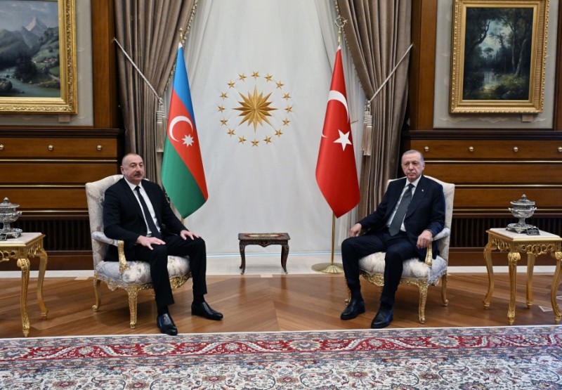 Ankarada Azərbaycan Respublikasının Prezidenti İlham Əliyevin Türkiyə Respublikasının Prezidenti Rəcəb Tayyib Ərdoğan ilə təkbətək görüşü başlayıb.