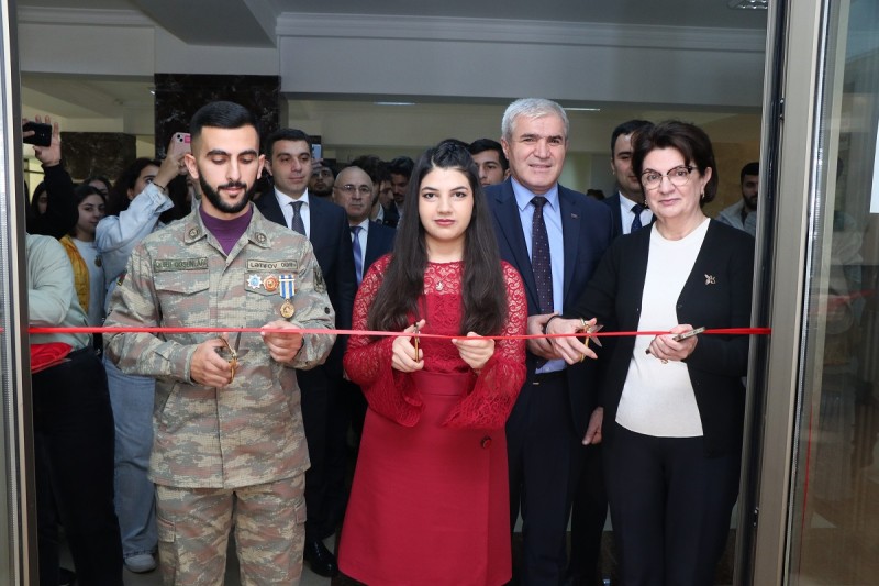 Adalet.az xəbər verir ki, əvvəlcə AzMİU-nun rəhbərliyi, qonaqlar və tələbələr universitetdə şəhidlərin xatirəsinin əbədiləşdirilməsi üçün yaradılmış abidə kompleksinin önünə güllər düzüblər, şəhidlərin xatirələrini yad ediblər. Sonra sərginin açılış mərasimi keçirilib.