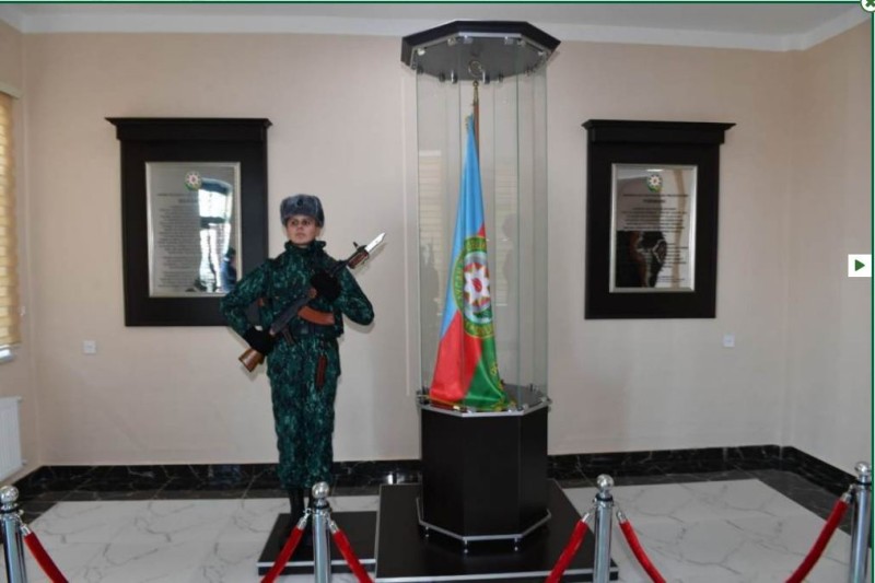 İnzibati binanın qarşısında ucaldılmış Dövlət Sərhəd Xidmətinin Vətən Müharibəsində həlak olmuş hərbi qulluqçularının xatirəsinə həsr olunmuş abidə qarşısına güllər düzülmüşdür.
