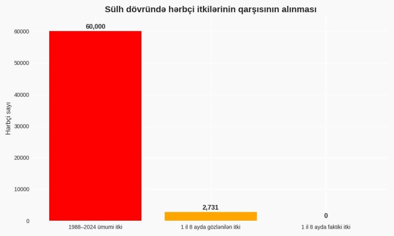 “Ermənistan isə iddia edir ki, bu rəqəm ümumilikdə 24 min nəfərə yaxındır. İtkinlərlə birlikdə ümumi rəqəm 60 min civarına qədər çıxır. Riyaziyyata əsasən, 1988-ci ildən 2024-cü ilin fevral ayına qədər ümumilikdə 60,000 nəfər ölüb. Hər günə təxminən 4.55 nəfər ölüm faktı düşür. Digər bir düşüncə təhlili ilə, Paşinyanın dediyi 1 il 8 ay ərzində, əvvəlki hərbi münasibətlər davam etsəydi, nə qədər hərbçi həyatını itirə bilərdi? Yeni hesabla, 1 il 8 ay ərzində təxminən 2,731 nəfər ölə bilərdi, əgər müharibə davam etsəydi. Sülh hər halda gözəl olsa da, qalibiyyət halında və vətən övladlarının şəhadəti ilə qazanıldığı üçün çox dəyərlidir və milli sərvətdir”.