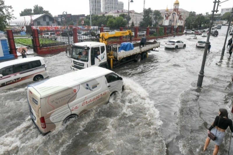 Rusiyanın Vladivostok şəhərində güclü yağış bir çox fəsadlara yol açıb.