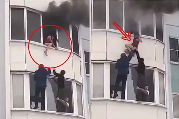 Rusiyada yanan mənzildə qalan hamilə qadın və uşağı yoldankeçənlər xilas etdilər - VİDEO