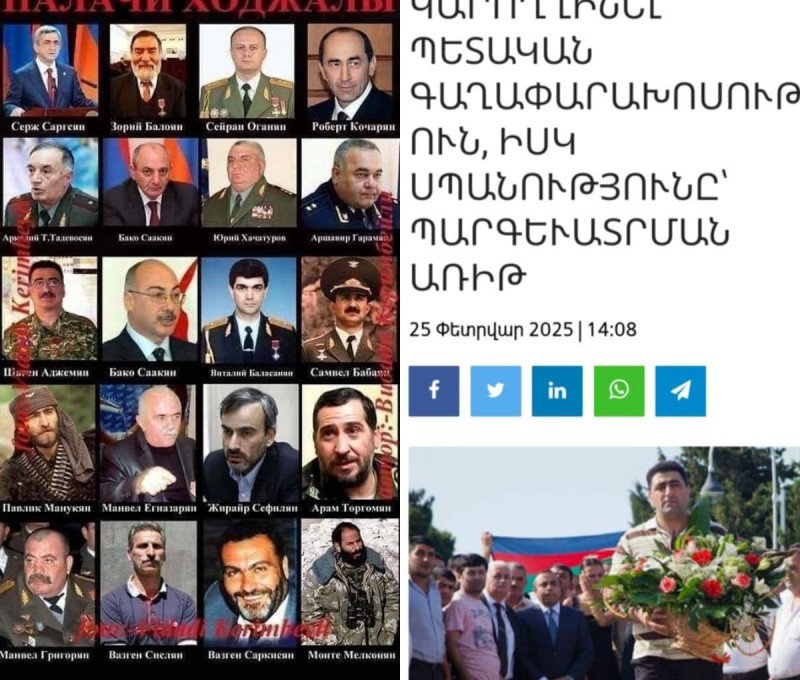 Həmin o məşum fevral gecəsində 613 nəfər türk olduğu üçün xüsusi qəddarlıqla öldürən Serj Sarkisyan. Robert Köçəryan, Seyran Ohanyan, Zori Balayan, Vitali Balasanyan, Bako Saakyan, Arkadiy Tadevosyan, Yuri Xaçaturyan, Samvel Babayan, Sason Saroyan, Aram Torqomyan, Manvel Qriqoryan, Vazqen Sarkisyan, Monte Melkonyan və sairlərin hərbi rütbəsi artırılarkən, yüksək vəzifəyə irəli çəkilərkən, onlar dünyaya “qəhrəman” kimi sırınarkən Ermənistanın dövlət ideologiyası nifrət deyildimi?