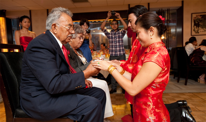 Çin mədəniyyətində toy mərasimləri zəngin adət-ənənələrlə doludur. Bu mərasim və şənliklərdə düyü şərabı xüsusi rol oynayır. Çində düyü şərabı qədim tarixə malik olan və xüsusi mərasimlər üçün hazırlanan ənənəvi bir içkidir. Toy mərasimlərində gəlinə düyü şərabı təqdim etmək də bu ölkədə ən qədim adətlərdən biridir.