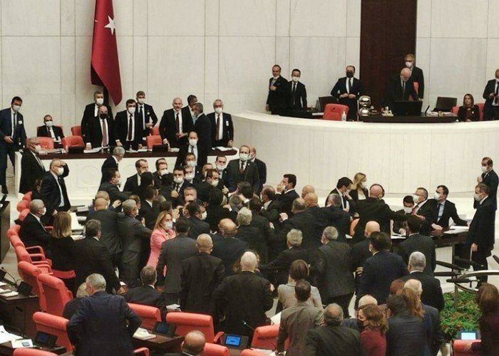 Türkiyə Böyük Millət Məclisində Daxili İşlər Nazirliyinin 2022-ci il üzrə büdcəsi müzakirə edilərkən deputatlar arasında əlbəyaxa dava olub.