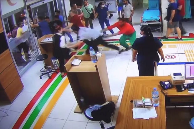 Türkiyədə kişi əvvəl arvadını, sonra xəstəxananın əməkdaşlarını döydü – VİDEO