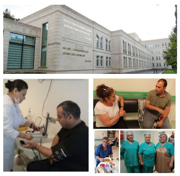 Otaqların hamısında məhz bu kateqoriyadan olan insanların rahat yaşaması üçün lazımi şərait yaradılıb. Birinci qrup əlillər 21 gün, ikinci və üçüncü qrup əlillər isə 18 gün tam bərpa kursu keçirlər. Bu müddətdə onlar gündə üç dəfə sağlam və təbii qida ilə təmin olunurlar. Mərkəz il ərzində 1000 nəfərə yaxın əlilin reabilitasiya və müalicəsi ilə məşğul olur. Əlillərin xarici ölkələrdə də müalicəsinə diqqət göstərilir. Mərkəzin həkim və tibb heyəti vaxtaşırı xarici ölkələrdə təkmilləşmə kursuna cəlb olunur, öz bilik və bacarıqlarını artırır. Funksional diaqnostika şöbəsində xəstələrin diaqnostikası üçün ən müasir avadanlıq quraşdırılıb. Mərkəz, həmçinin bərpa müalicəsi alanların yaşını və sağlamlıqlarını nəzərə almaqla onların mədəni-kütləvi tədbirlərə, müalicə idmanına cəlb edilməsi, onlarda gigiyenik vərdişlərin tərbiyə edilməsi, sağlam həyat tərzinin təbliği, bərpa müalicəsi alanlarla bağlı məlumat bankının yaradılmasını da həyata keçirir. 80 çarpayısı olan mərkəzdə 120 işçi çalışır. Burda hər kəs öhdəsinə düşən vəzifə borcunu eyni zamanda vətəndaşlıq borcunu ləyaqətlə yerinə yetirirlər. Onlardan bir neçəsinin adını çəkmək istəyirəm: psixoloq-həkim Elnarə Fərəcova, fiziaterapevt Rafət Əsgərova, nervpatoloq Arif Abdullayev, baş tibb bacısı Zülfiyyə Ələkbərova, Gülşən Nağıyeva, Arifə Bağırova tibb bacısı Zemfira Misirxanova və başqaları həssas bir müəssisədə çalışdıqlarının fərqindədirlər və onların biliyi, təmkini, səbri, əməyi hər zaman alqışa layiqdi”. Elmira doktorun ətraflı məlumatından sonra adıçəkilən kabinələrə bir-bir girib baxıram. Hər şey Doktorun dediyi kimidir və üstəlik təmizlik, səliqə-səhman da öz yerində!