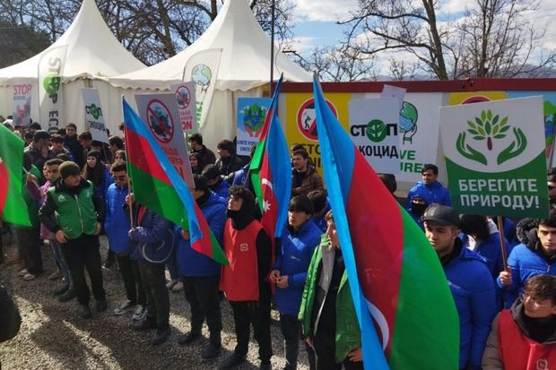 Belə ki, ekofəallar və gənc könüllülər “Azərbaycan oyaqdır, sərvətinə dayaqdır!”, “Azərbaycan vahiddir, sərvətinə sahibdir!”, “Ekoloji cinayətə son!”, “Stop ekoterror!”, “Берегите природу!”, “Экоциду нет! Мониторингу да!” şüarlarını səsləndirirlər.
