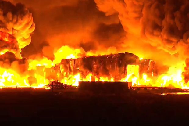 Sosial şəbəkələrdə yayılan məlumata görə, təxminən 10 tonluq yanacaq çəni partlayıb.