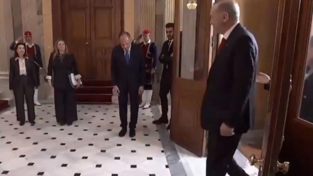 Yunanıstanlı nazirin Ərdoğana baş əyməsi ölkədə sərt reaksiyalara səbəb oldu - VİDEO