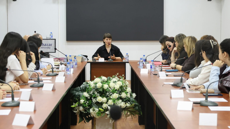 Tədbirin sonunda universitetin rektoru Dr. Raziyə İsayeva Regina Düriqi qəbul edib və qonağa “Xəzər”in xatirə hədiyyələri təqdim olunub.